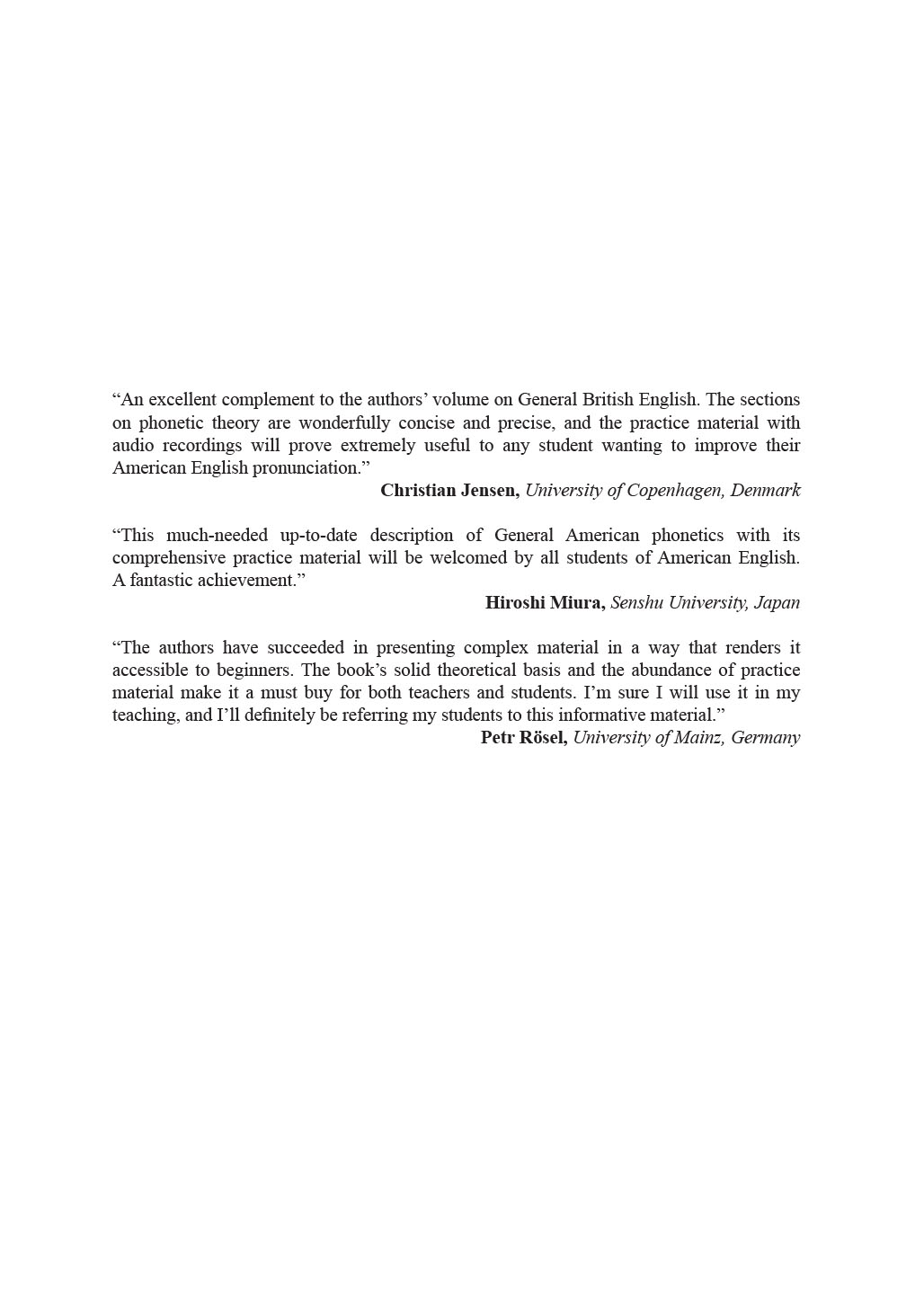 American English Phonetics and Pronunciation Practice provides an accessible introduction to basic articulatory phonetics for students of American English. Built around an extensive collection of practice materials, this book teaches the pronunciation of modern standard American English to intermediate and advanced learners worldwide. This book: • provides an up-to-date description of the pronunciation of modern American English; • demonstrates the use of each English phoneme with a selection of high-frequency words, both alone and in context in sentences, idiomatic phrases and dialogues; • provides examples and practice material on commonly confused sounds, including illustrative pronunciation diagrams; • is supported by a companion website featuring complete audio recordings of practice material to check your pronunciation against; • can be used not only for studying pronunciation in the classroom but also for independent practice. American English Phonetics