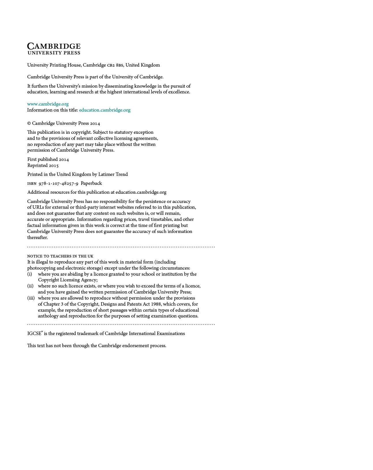 Cambridge IGCSE® English as a Second Language Teacher's Book is part of the series of resources matched to the revised Cambridge International Examinations 0510 and 0511 syllabuses.