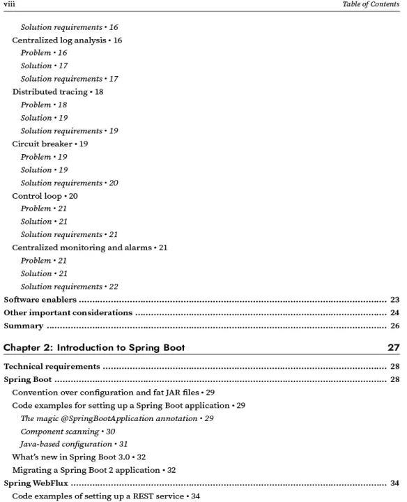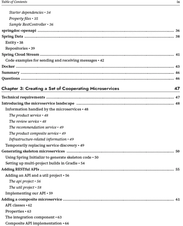 This book covers Java 17, Spring Boot 3, and Spring Cloud 2022. Java EE packages are replaced with the latest Jakarta EE packages. Code examples are updated and deprecated APIs have been replaced, providing the most up to date information. Gain knowledge of Spring's AOT module, observability, distributed tracing, and Helm 3 for Kubernetes packaging.