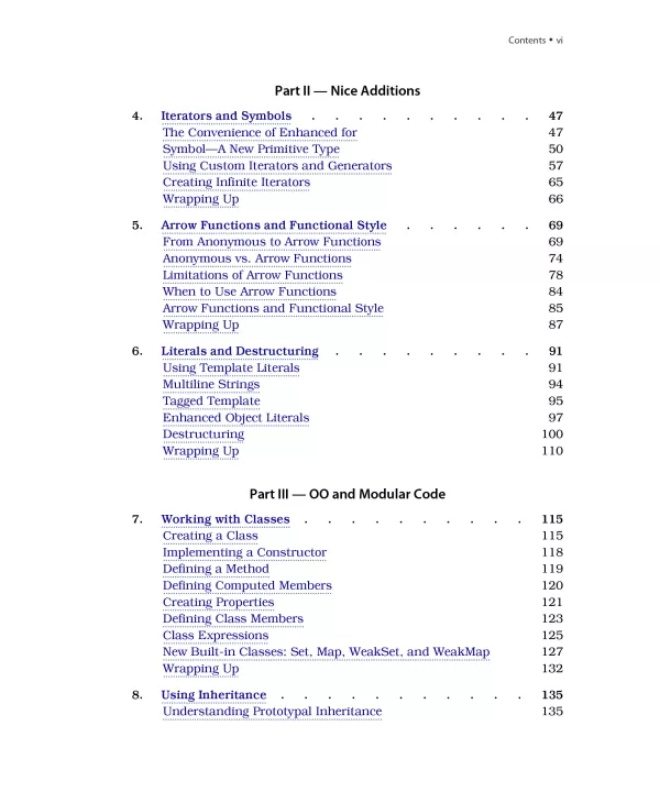 Whether you program the frontend or the server side, you can now write concise, elegant, and expressive JavaScript with newer features like default parameters, template literals, rest and spread operators, destructuring, arrow functions, and generators. Take it up a notch with features like infinite series, promises, async, and metaprogramming to create flexible, powerful, and extensible libraries. While the evolved features of the language will draw you in, the hundreds of examples in this book will pin the concepts down, for you to use on your projects. Take command of modern JavaScript and unlock your potential to create powerful applications.