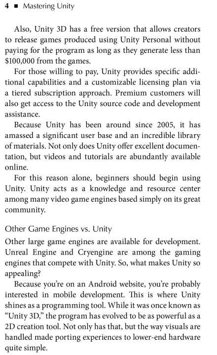 armed forces, Mastering Unity focuses on a broader usage for Unity. In
